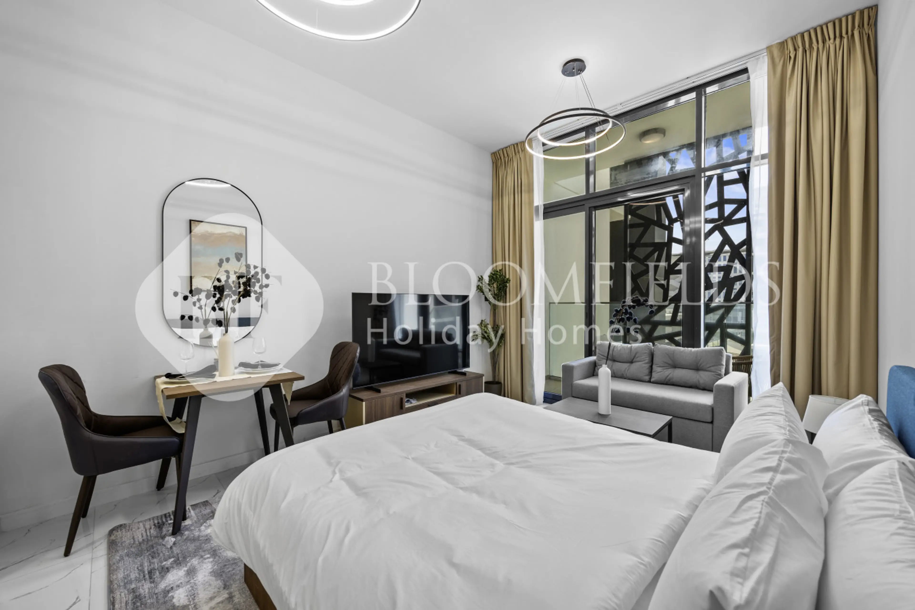 Welcome to a refreshing stay in this trendy apartment where you can enjoy stunning views every morning while savoring your coffeeo Studio Apartmento Fully Equipped kitcheno High end modern furnitureo Built-in Closetso Complementary high-speed interneto brand-new appliances, including (a smart Tv, re...